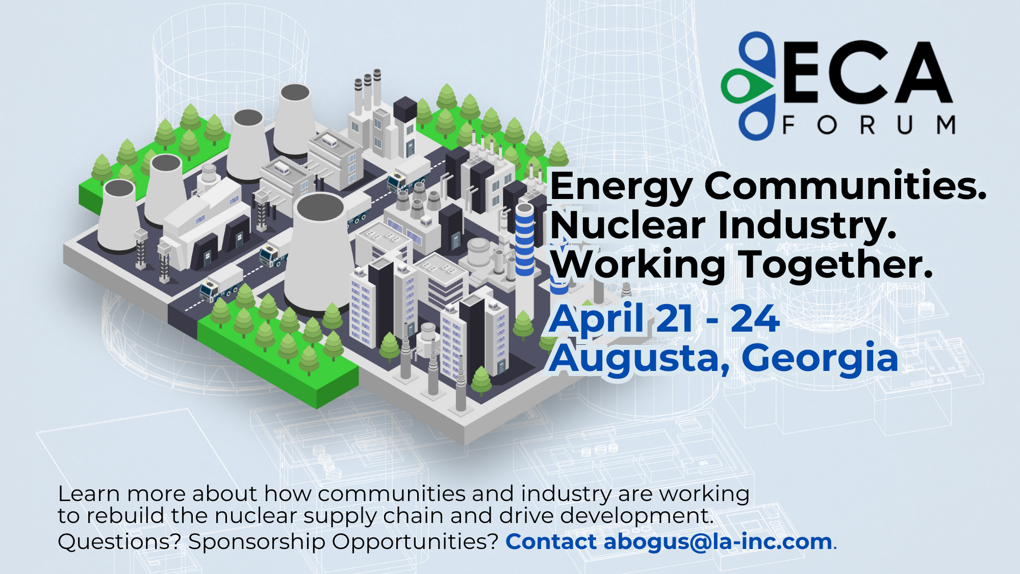 The Energy Communities Alliance (ECA) is pleased to host The Energy Communities Forum on Hosting New Nuclear Development, August 3-5, 2022, at the Marriott University Park in Salt Lake City.